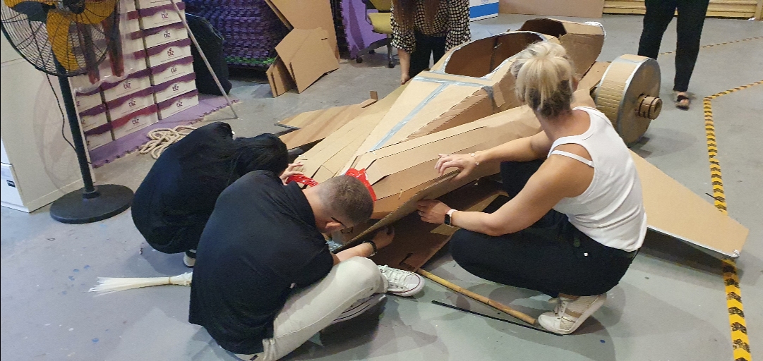 Flat Out Top Gun sees teams build and fly a 1:4 scale F18 jet plane made from recyclable materials. Divided into sub-teams, participants plan, construct, decorate, and pilot their jets in a thrilling air show display. It’s teamwork, resourcefulness and Maverick-inspired fun all rolled into one high-energy experience!